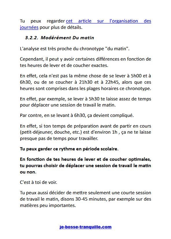 Le guide inclut des stratégies d’adaptation spécifiques selon ton chronotype, avec des conseils pratiques pour les ajustements de rythme.