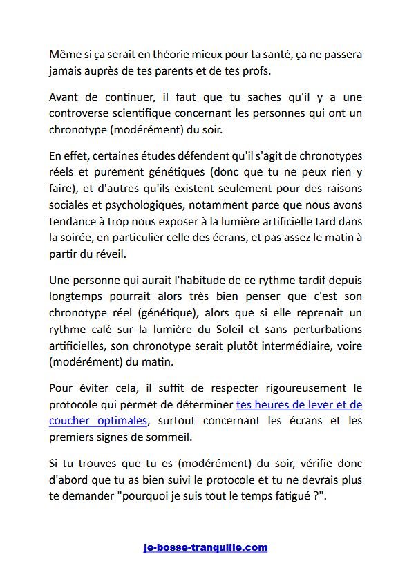 Le guide t’explique comment faire des ajustements intelligents entre ton rythme naturel et les contraintes scolaires sans sacrifier ta santé.