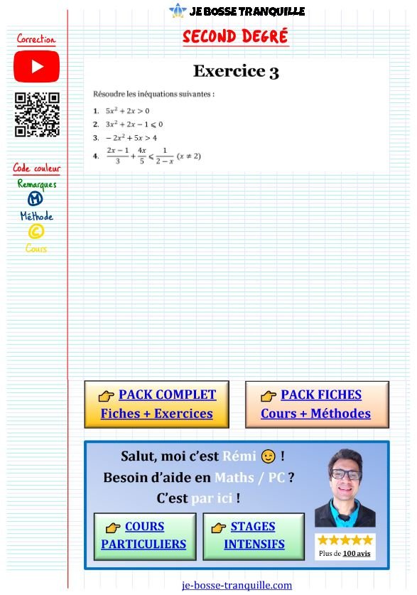 Cet equation second degré exercice te challenge avec quatre inéquations variées, des plus classiques aux plus piégeuses !