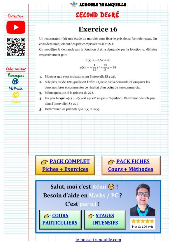 Plonge dans le monde du marché économique avec cet exercice corrigé polynome du second degré passionnant ! 💼