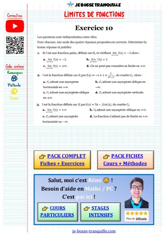 L’exercice renforce ta capacité à identifier les propriétés clés des fonctions pour déterminer leurs limites et asymptotes.