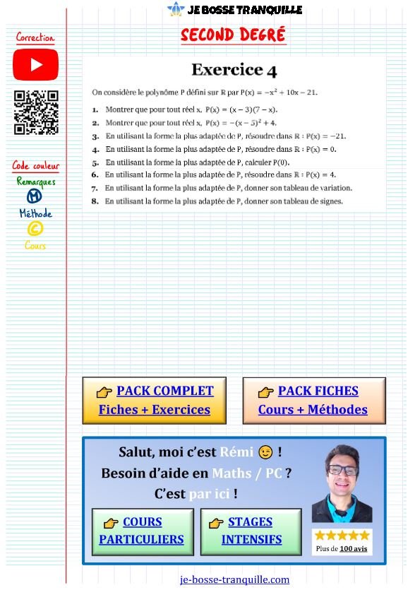 Dans cet exercice second degré, tu vas explorer le polynôme P(x) = -x² + 10x – 21 sous toutes ses coutures.