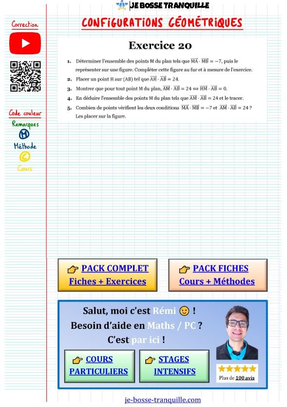 Tu manipuleras des produits scalaires pour déterminer et représenter graphiquement des ensembles de points vérifiant certaines conditions.